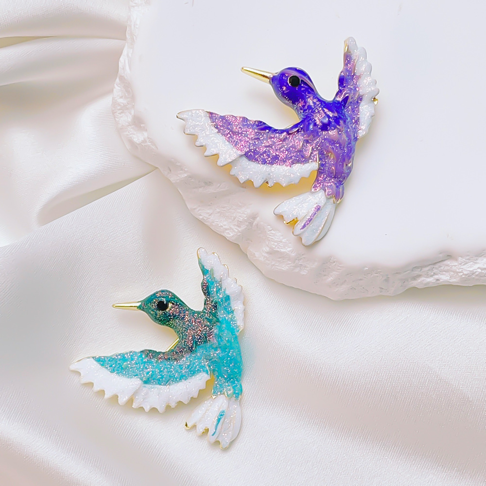 デザイン感国風エナメルブルー翼小鳥ブローチ女性気質復古ピンコート洋服胸花創意アクセサリー