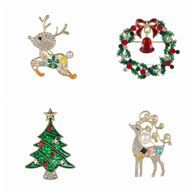 欧米越境クリスマスベルオイルドロップブローチ、鹿、高級グリーンリース、クリスマスツリー、義烏アクセサリー卸売