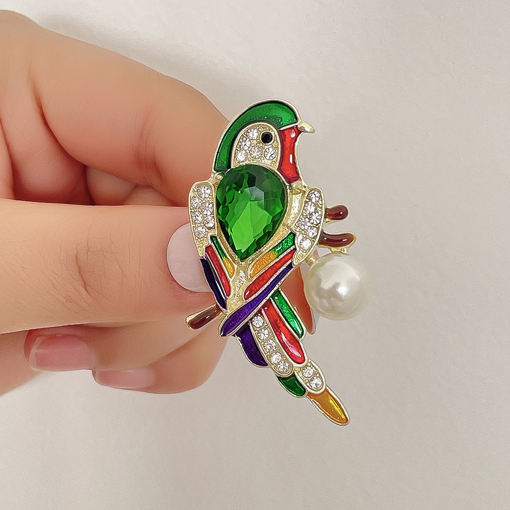 新しいクロスボーダーオウムブローチ、ファッショナブルなエナメルパール、ハイエンドの鳥のネックラインピン、女性用のパーソナライズされたアクセサリー、コサージュ