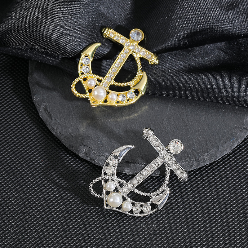 欧米の国境を越えてダイヤモンドのアンカーの形のブローチの男性のスーツの胸の花のファッションの気質の海軍の風のブローチの装飾品