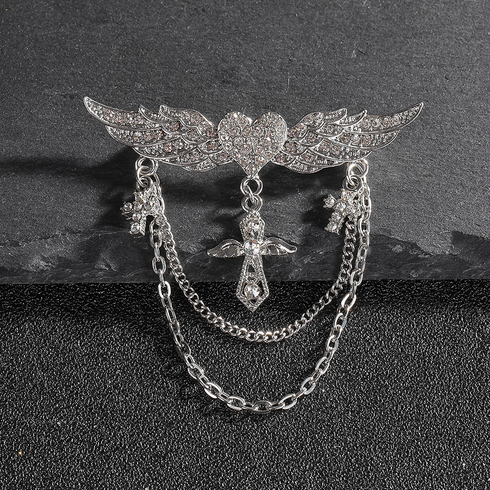 新型の個性的な男性の欧米風のレトロなクロスボーダーの人気のある天使の翼の愛のチェーンの多層は十字を入れます。