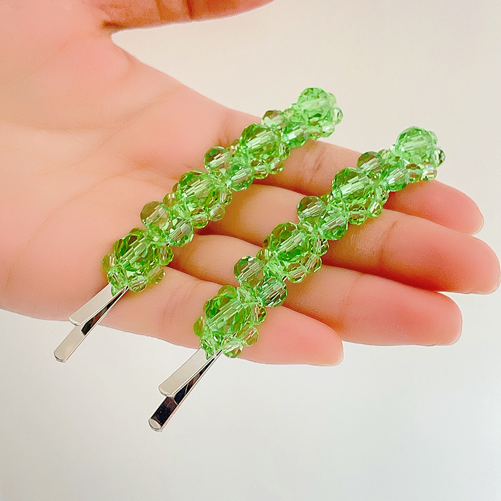 新商品の高冷清雅高級感グリーン水晶ヘアピン手作りの精巧なサイドクリップの砕髪前髪クリップの女性