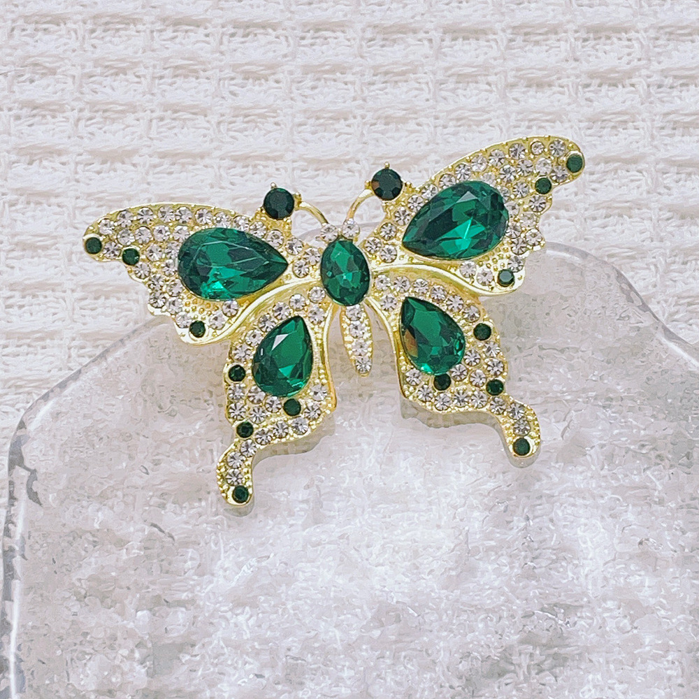 新しいタイプのフランスのレトロな祖母の緑のドリルの蝶のブローチの小さい衆の重工はドリルの金属の服を入れて胸の花の女性を飾ります。