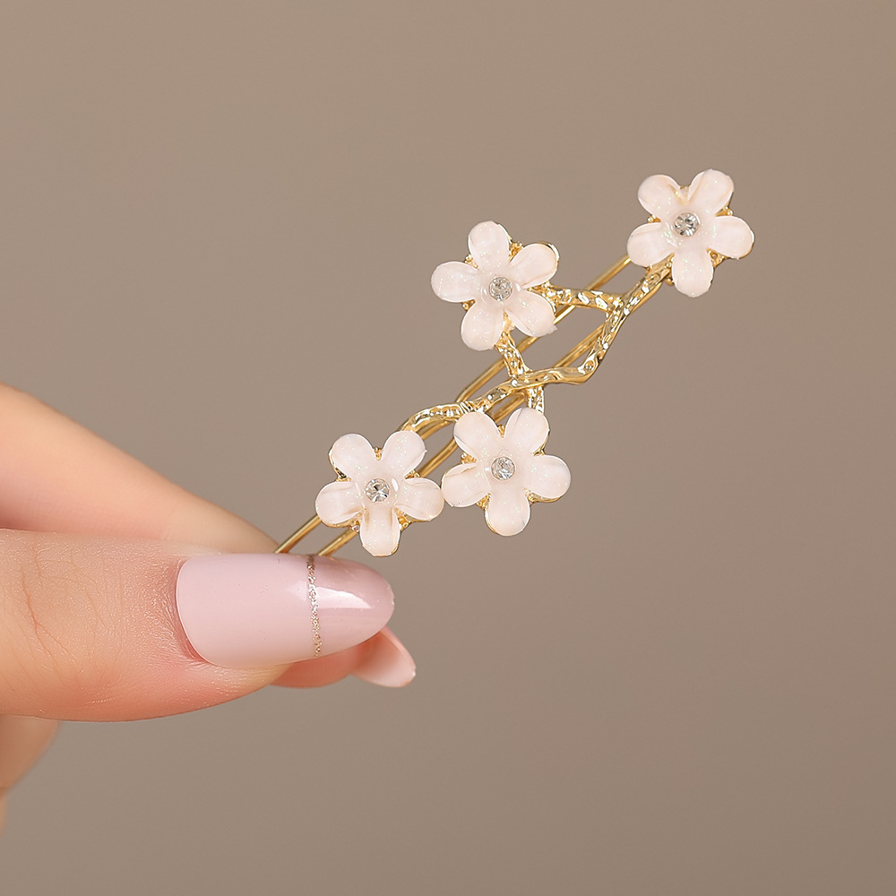 精巧な真珠のツバキの花の一字は砕髪の前髪を挟みます。