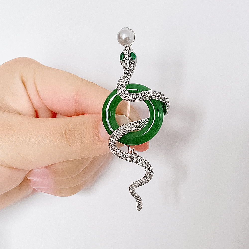 中国風2025年新型十二生肖緑霊蛇ブローチ胸花高級満ドリルスーツピン留め女
