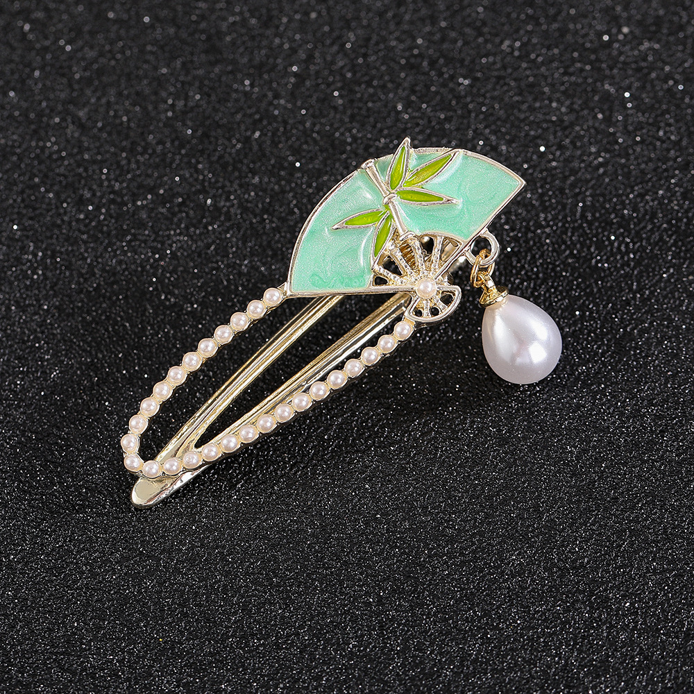 新しい竹の葉の小さな扇子中国風のアヒルのくちばしクリップヘアアクセサリー女性の気質サイド前髪クリップヘアピン中国風のアクセサリーヘアピン
