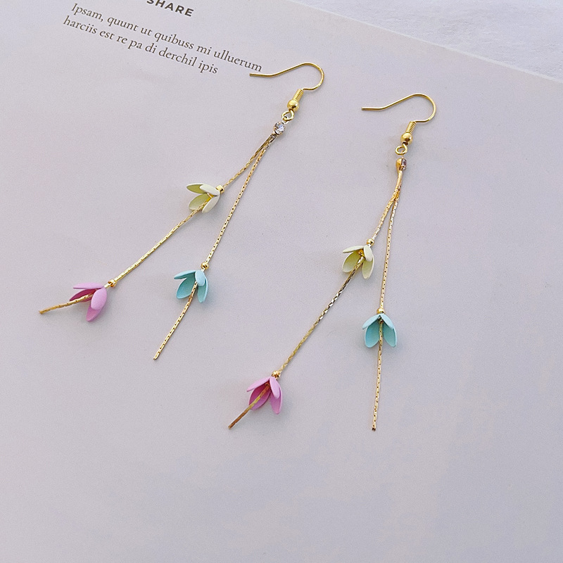 長いフリンジのイヤリングのモランディ色の花の精巧なフリンジのイヤリングの春の夏の小さい清新なイヤリングのメーカーは卸売りします。