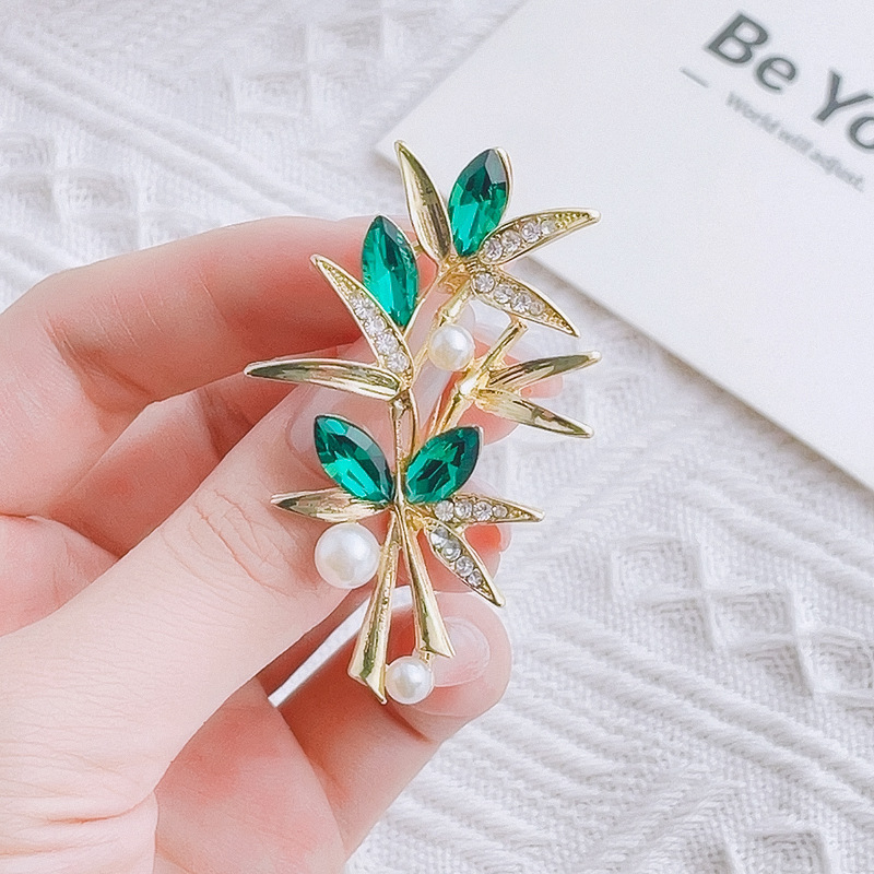 高級植物の緑の竹の葉のブローチは真珠の水晶の胸の花の気質の服をつけてピンを組み合わせて光の装飾品を防ぎます。