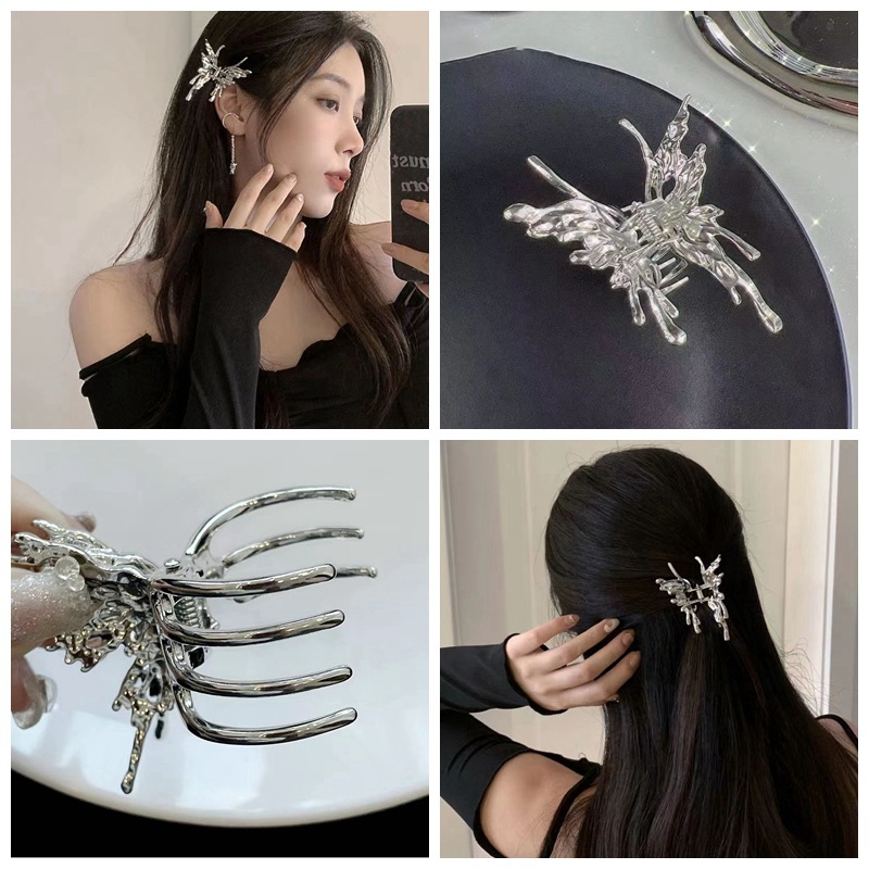 合金のしわの蝶のサメのクリップの髪は液体の仙気の蛾の髪をつかんで女性を挟みます。