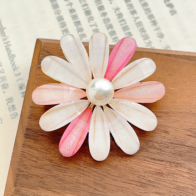 シンプルなファッションの太陽の花のブローチに合わせて服のピンのスカーフを掛けます。