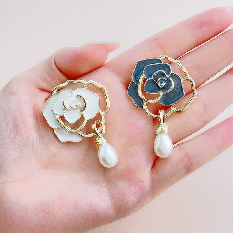 ツバキの花の滴油のブローチの真珠の水滴の気質は服の胸の花の軽い豪華なフランスのピンの高級感のブローチを配合します。