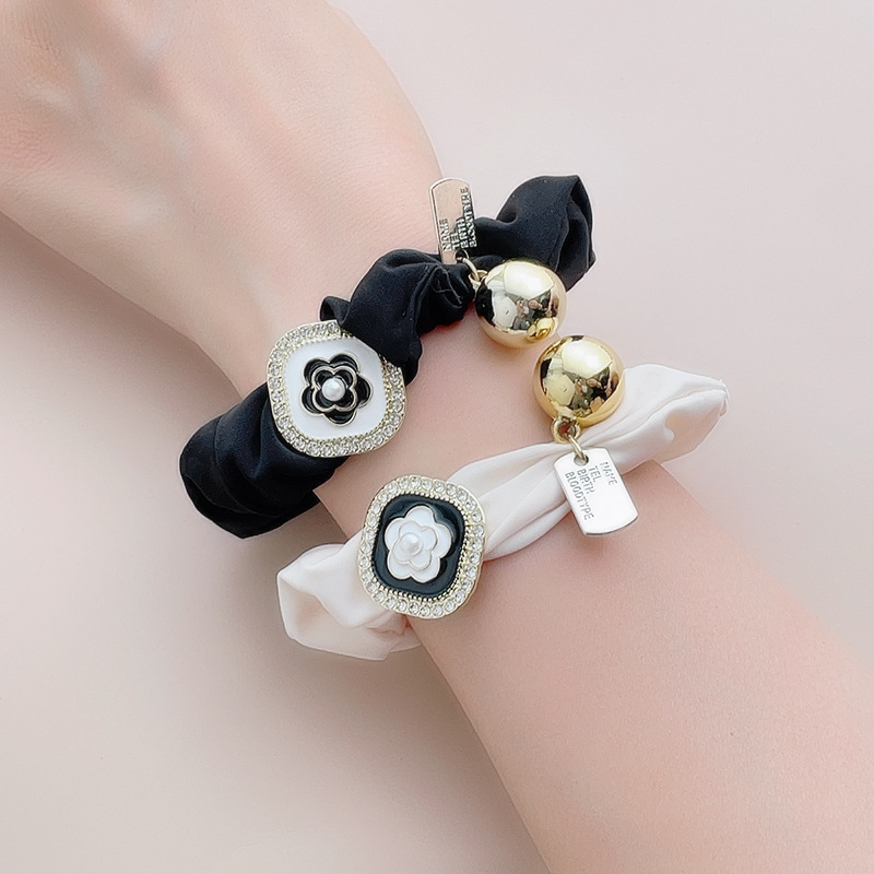 フランス風の小さな香りの質感の髪輪ツバキの花の大きい腸の輪の紐の白黒のシンプルな頭飾りの真珠の気質の髪飾りの女性