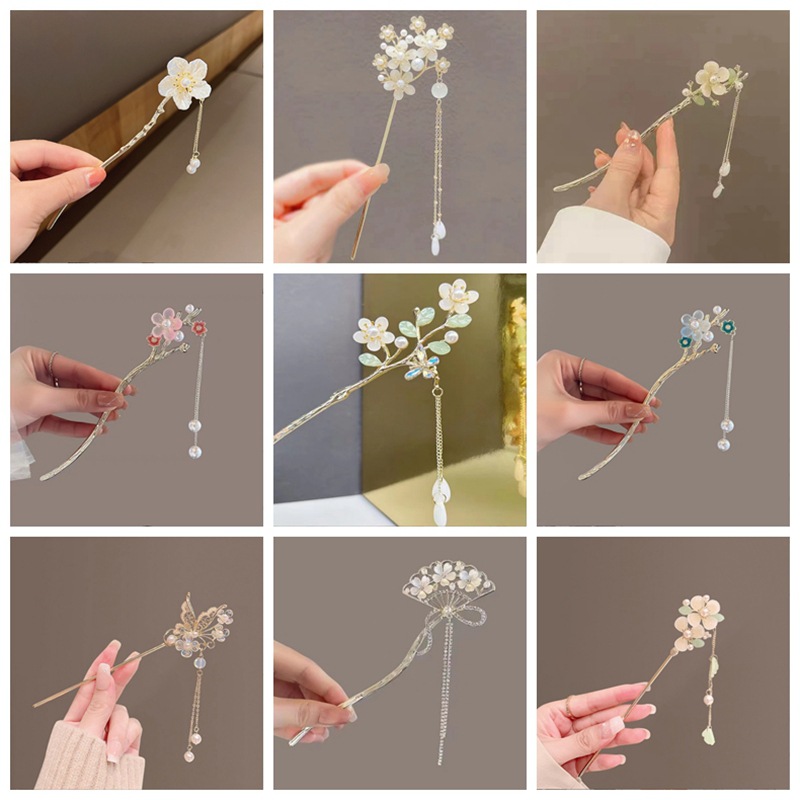 女性用簪、古代風漢服、古代衣装、新しいスタイルの頭飾り、スズランの花の簪、高級感のある気質アクセサリー、タッセルフラッグ