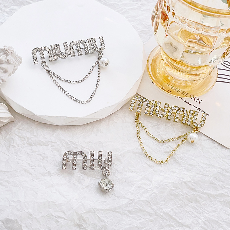 ファッション的な雰囲気のアルファベットのピンピンの光防止のブローチには、ダイヤモンドの胸の花のスーツの服の個性があります。
