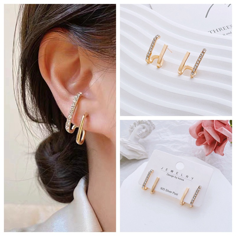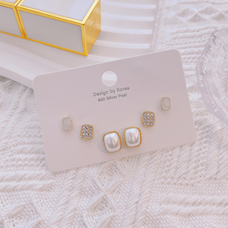 S925銀針真珠満ドリルの小さな四角のピアスの複数のピアスのセットの個性的なイヤリングのシンプルで洗練されたイヤリングの女性