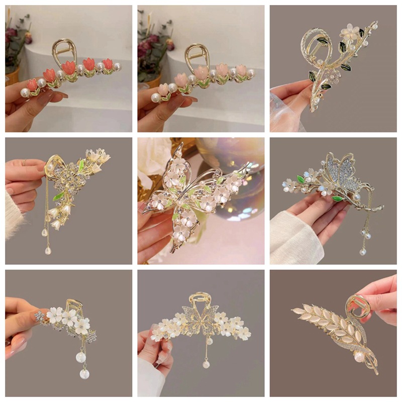 新商品のチューリップの超仙流蘇は挟みを挟んで、水ドリルの花のヘアピンの髪飾りネットの赤い蝶のクリップの髪飾りをします。