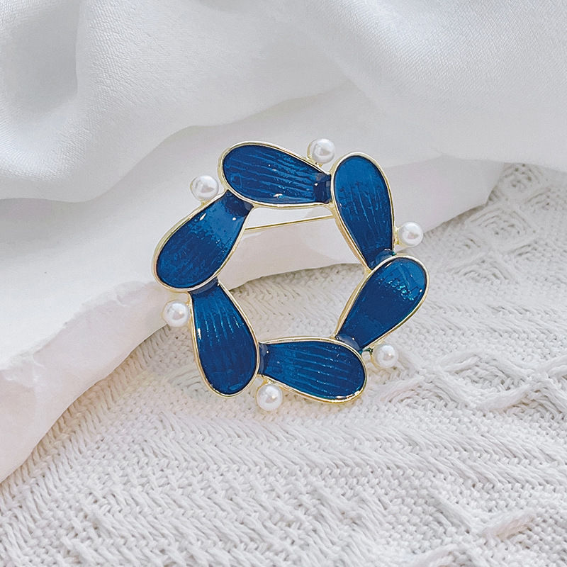 ファッションシンプルなフリーブルーの花びらの丸いブローチの個性的な大衆のデザイン感の真珠のピンのスーツのシャツの装飾