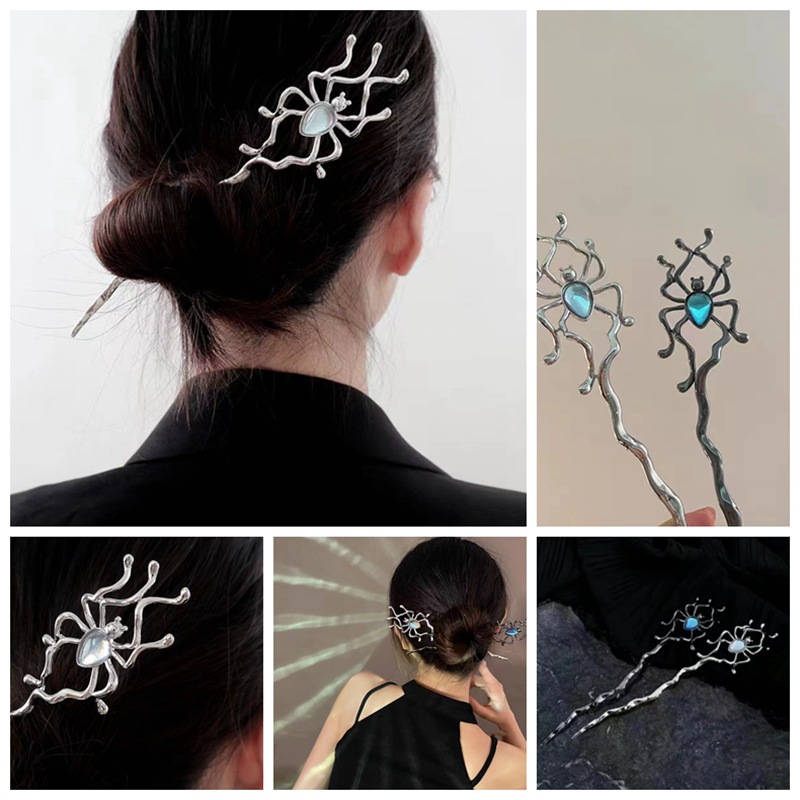 シンプルな現代の月明かりのクモのかんざしの女性の高級感の個性のファッションの団子の頭の皿のかんざしの合金のかんざしの女性