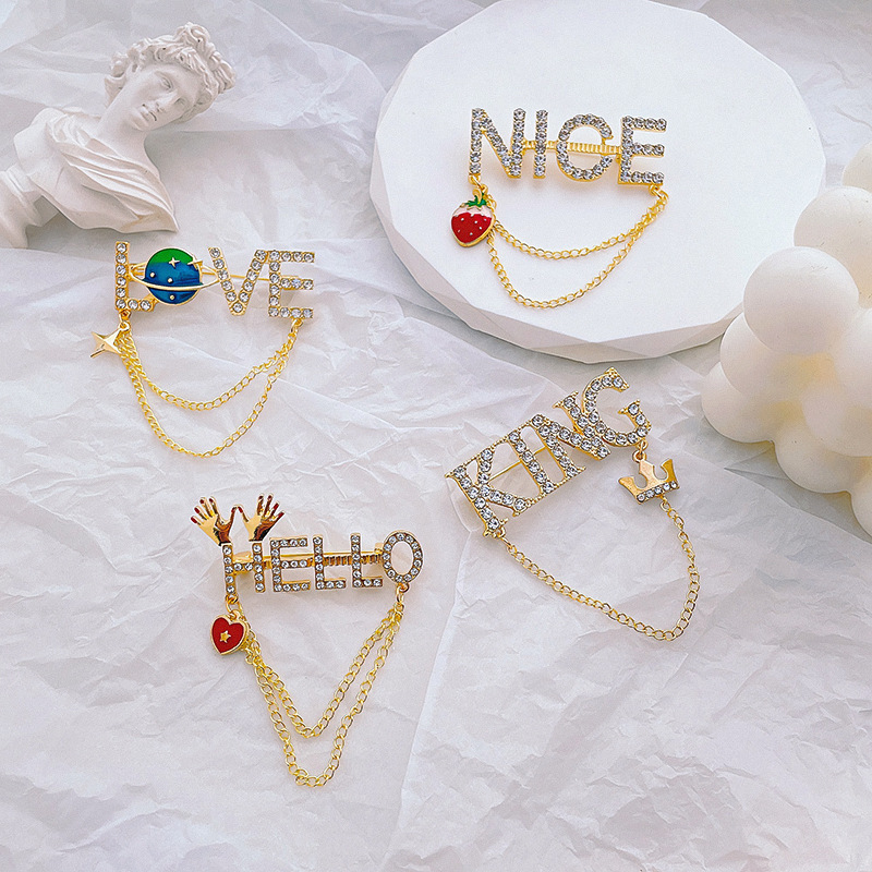 ブローチの胸の花のピンの新型のハイエンドのスーツの高級な精巧なアルファベットの単語の地球のセーターのスーツの専用のブローチ