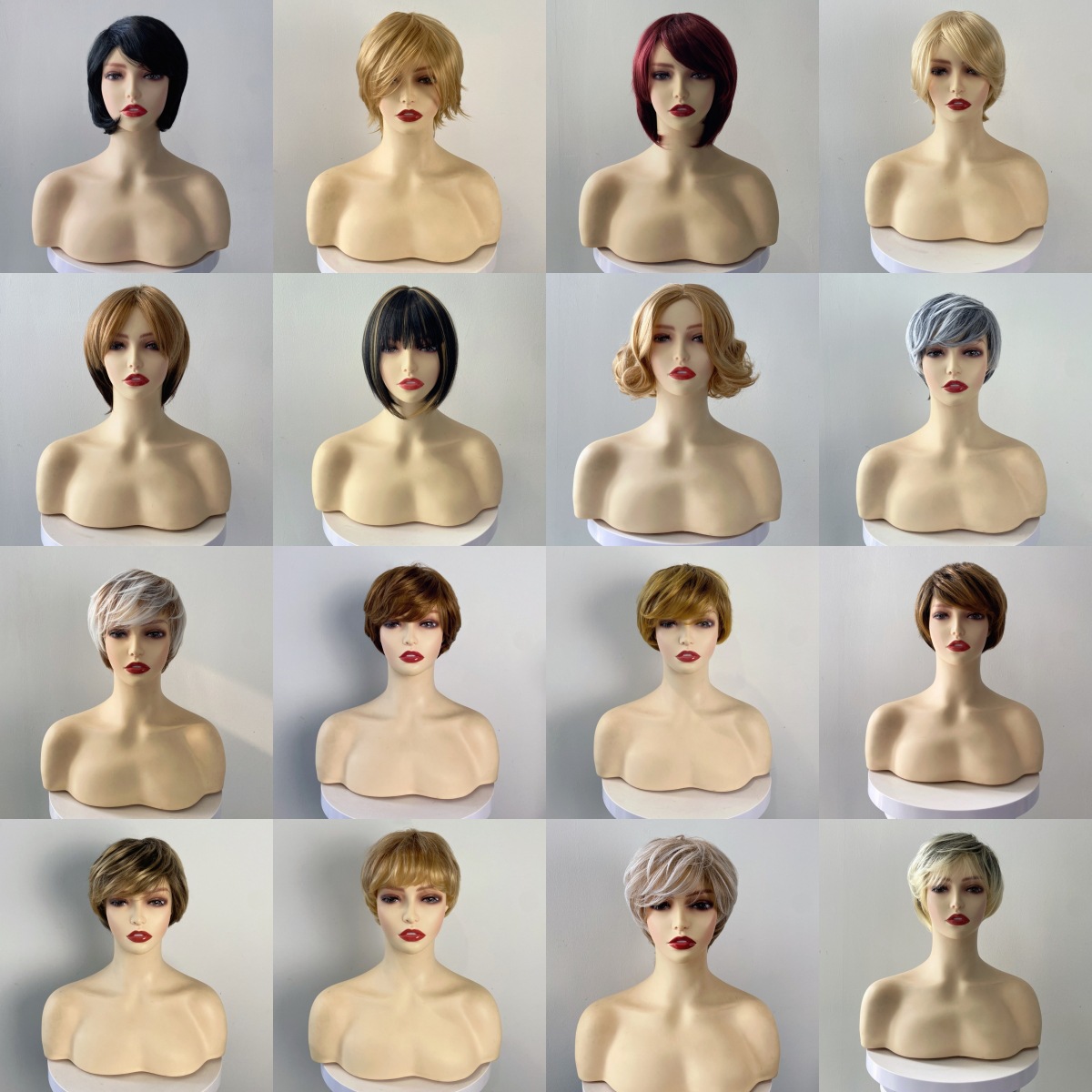 国境を越えた貿易ホットセールウィッグふわふわファッションショートストレートヘアウィッグ機械化学繊維ウィッグフルヘッドセットメーカー卸売