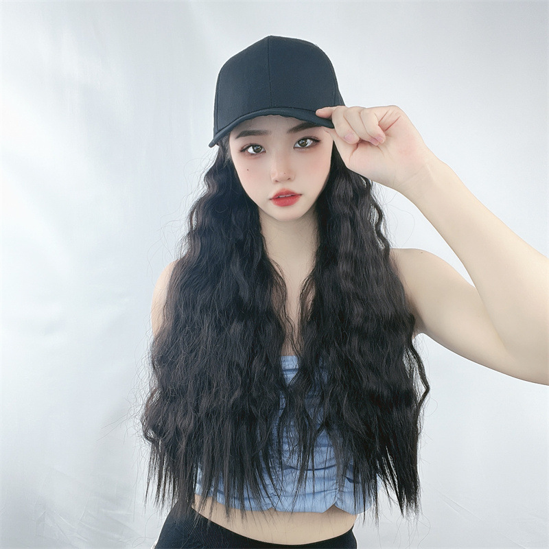 江西かつら工場の現物卸売り生中継付き化繊白鴨舌野球帽子長巻き波かつら