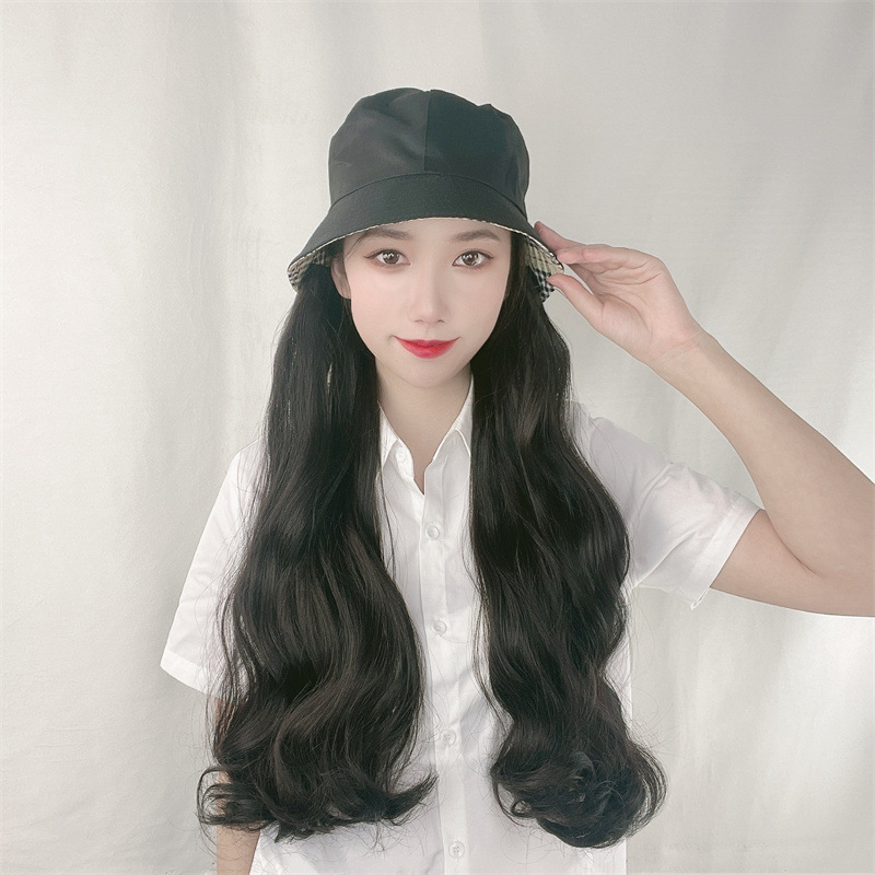 ディザトーン生中継貨物付きかつら帽子一体夏女性ファッション黒長直髪通気漁師帽子スポット卸売り
