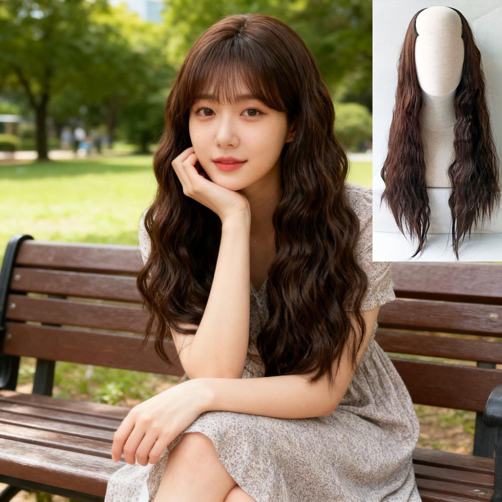 かつら卸売り長直髪u型半分カバー女子の中で長い髪がふわふわしてリアルなファッションで顔を修理する髪型