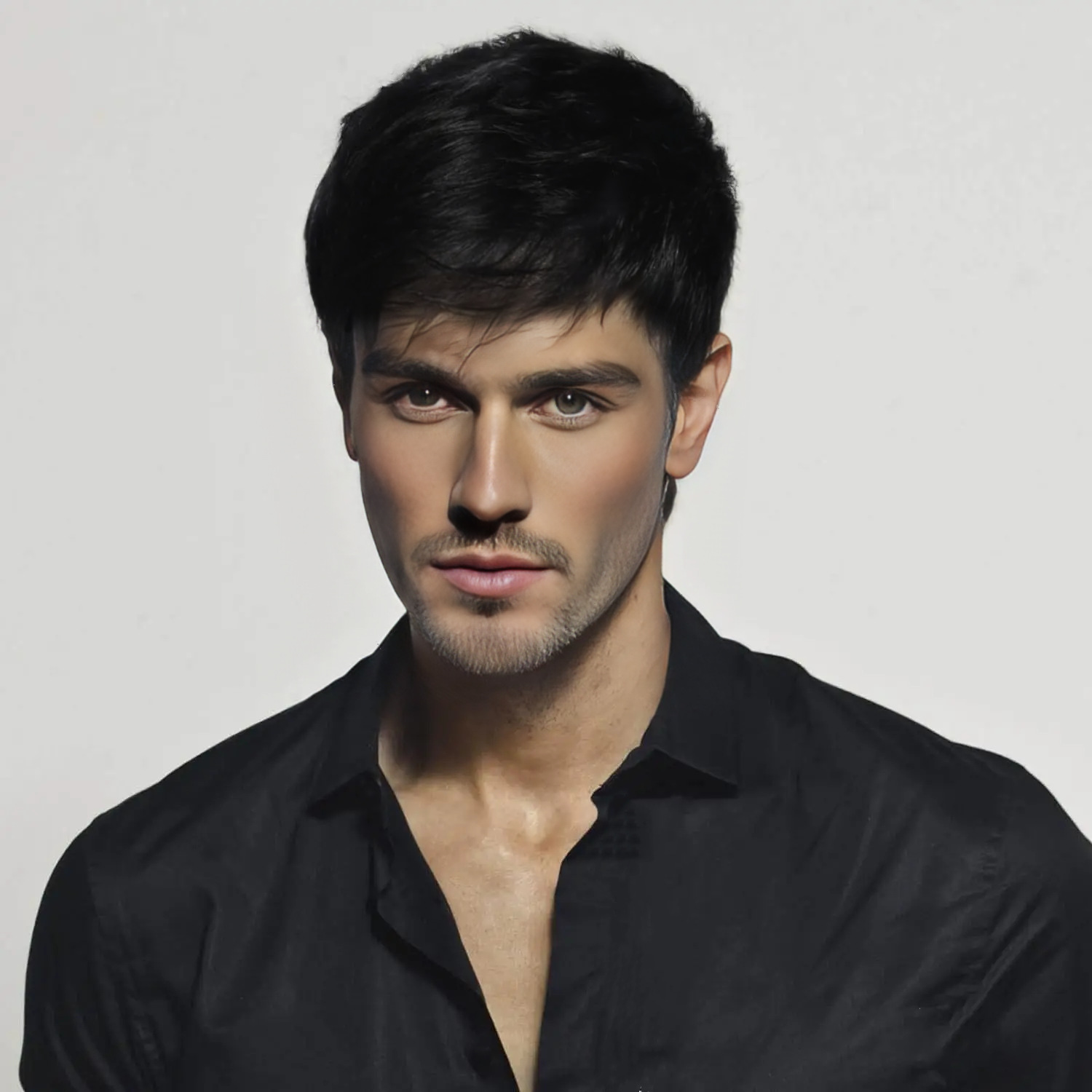 AliExpress 外国貿易メンズウィッグ斜め前髪ショートヘアヘッドギアヨーロッパとアメリカの新しい黒ふわふわショートヘア工場供給