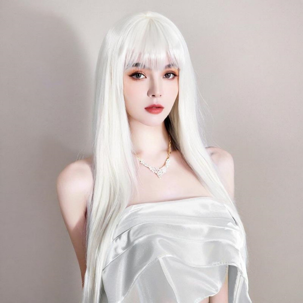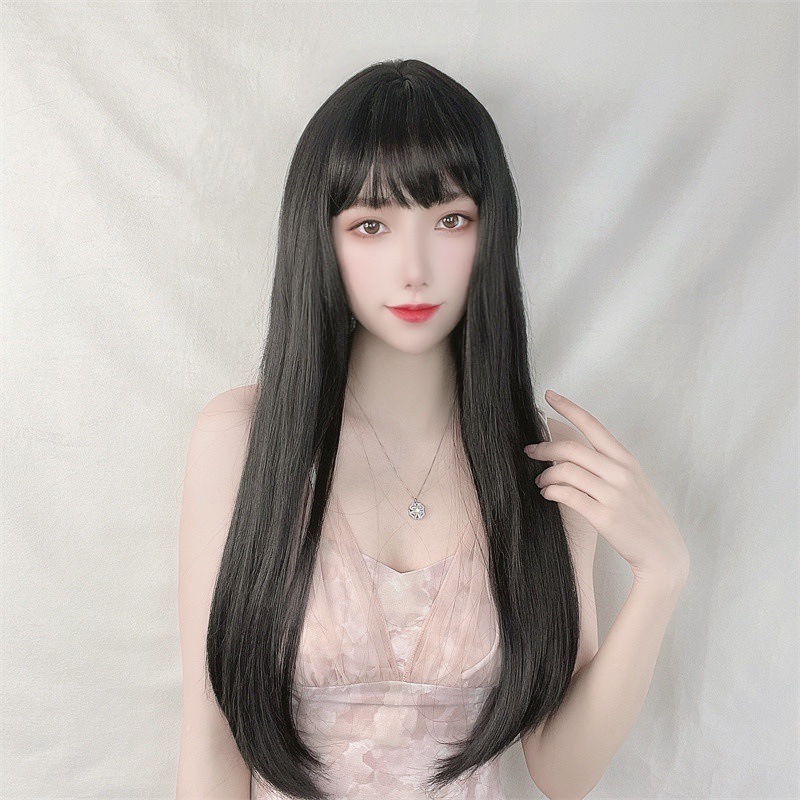 欧米風外国貿易ウィッグ 女性用 エアーバング ロングストレートヘア ネットセレブ同型 純白高温耐熱ファイバーウィッグ 工場在庫あり