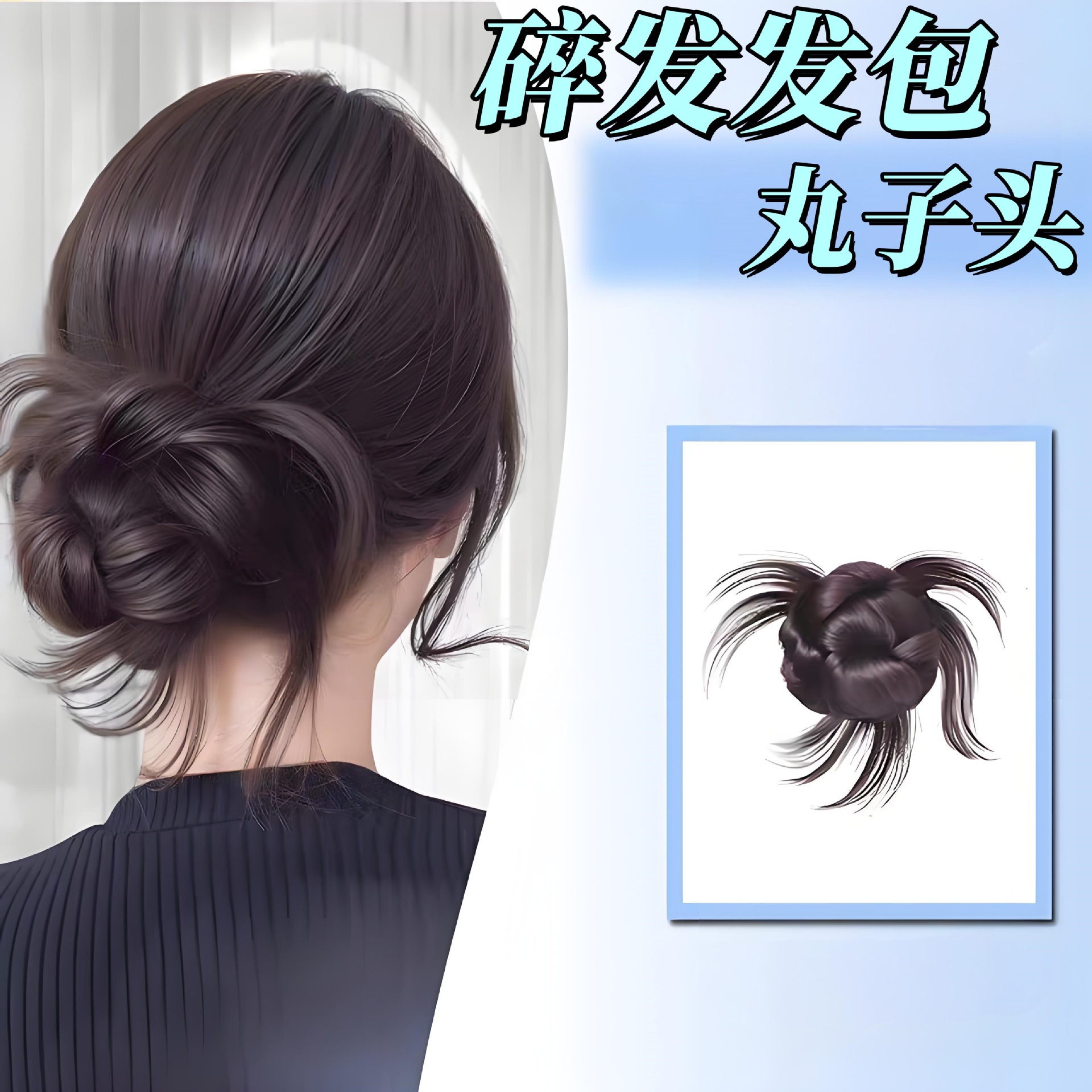 偽の髪のスターの同じ種類の砕毛のつぼみの団子の頭ははさみをつかんで低くてふわふわしています。