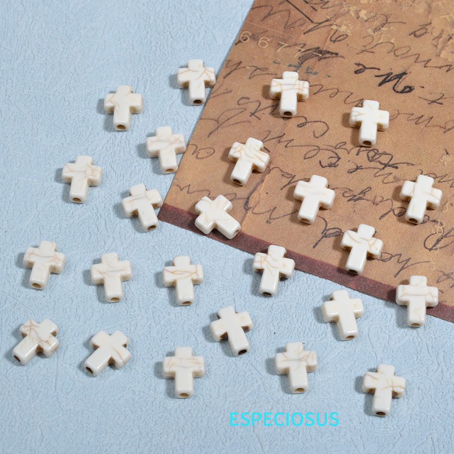 ベージュアクリル穴付きクロスビーズdiyアクセサリーアクセサリーレトロ模造松石隔珠ブレスレットビーズ