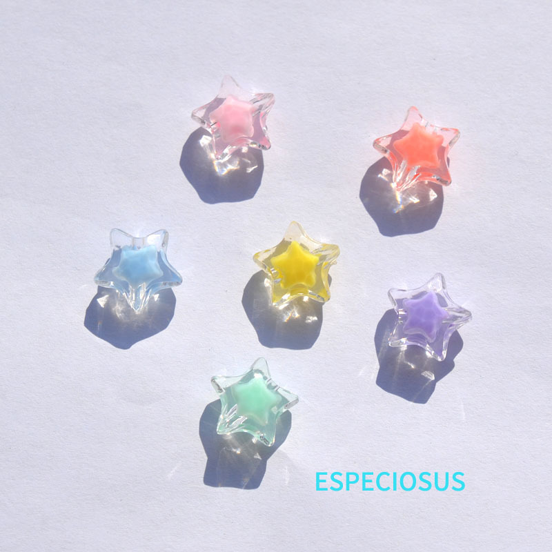 Diyアクセサリー15mm透明幻彩アクリル五角星メッキカラービーズ
