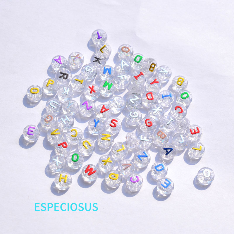 Diyアクセサリーアクセサリーアクリルブレスレットビーズ素材10mmスパンコール透明カラー平円アルファベットビーズ100個