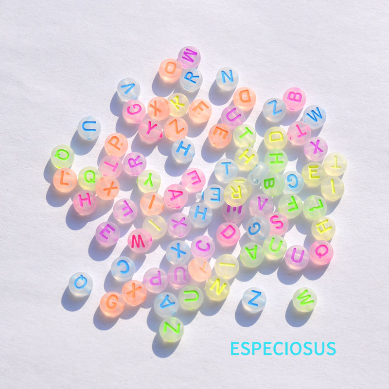 Diyアクセサリーアクセサリーブレスレットネックレスビーズ素材7mmフラットアクリルビーズ蛍光色アルファベットビーズ500个