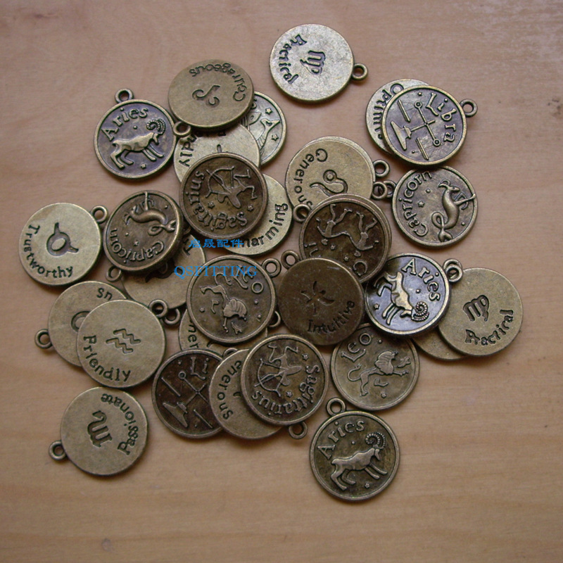 Diyアクセサリー部品ビーズ材料古青銅復古ペンダント合金ペンダント十二星座ランダム50個