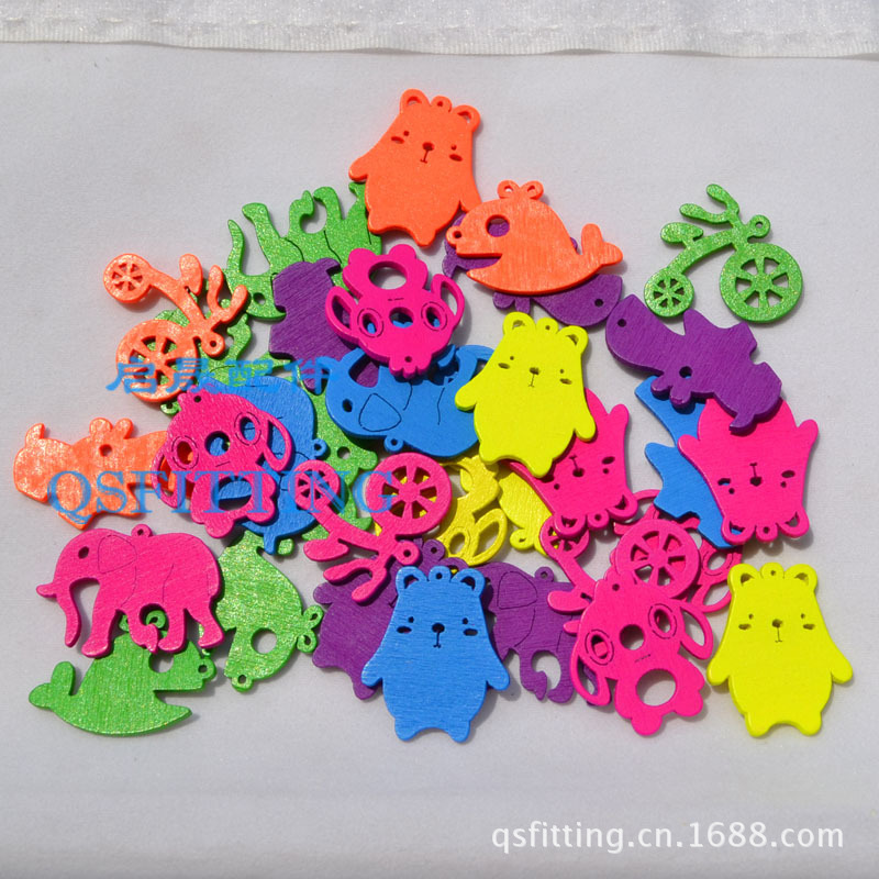Diyアクセサリー工芸品装飾材料25mm蛍光色アニメ動物木片混色装