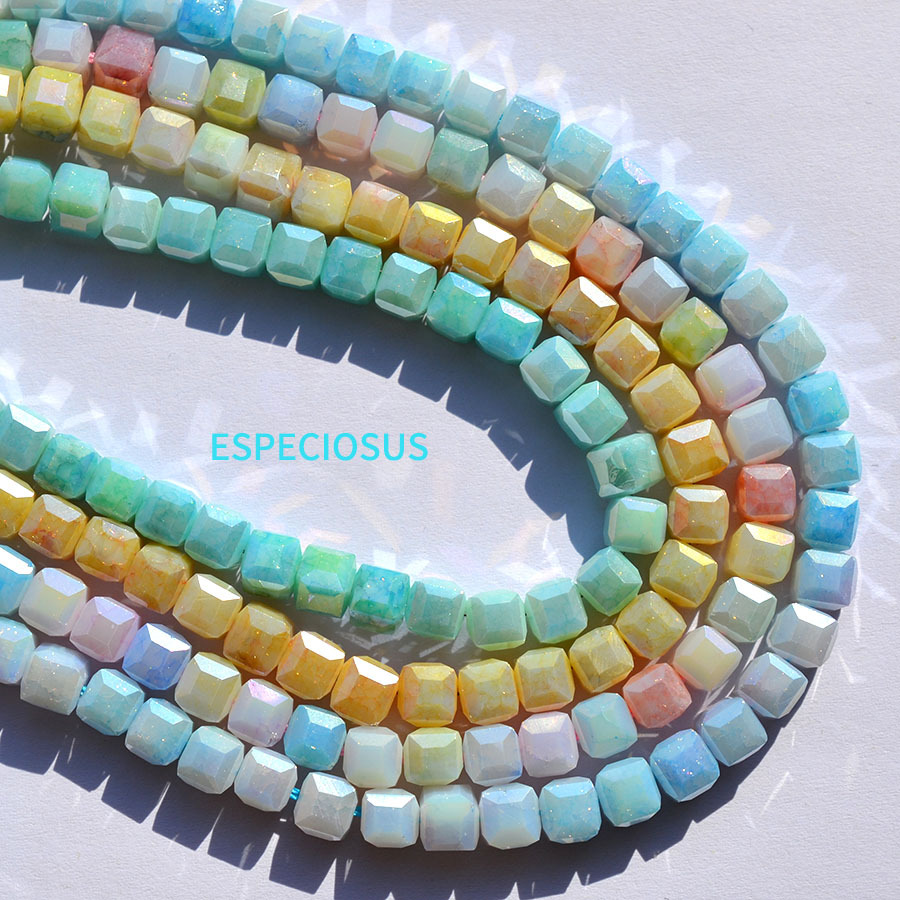 6mm角型彩色2色水晶ビーズdiyアクセサリーグラデーション色角糖隔珠ブレスレットビーズ材料