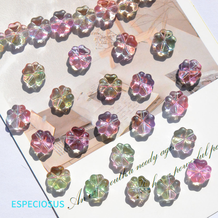 10 ミリメートルクリスタル四つ葉のクローバー透明ガラスルースビーズグラデーションカラーストレートホールガラスビーズ diy ブレスレットジュエリーアクセサリー
