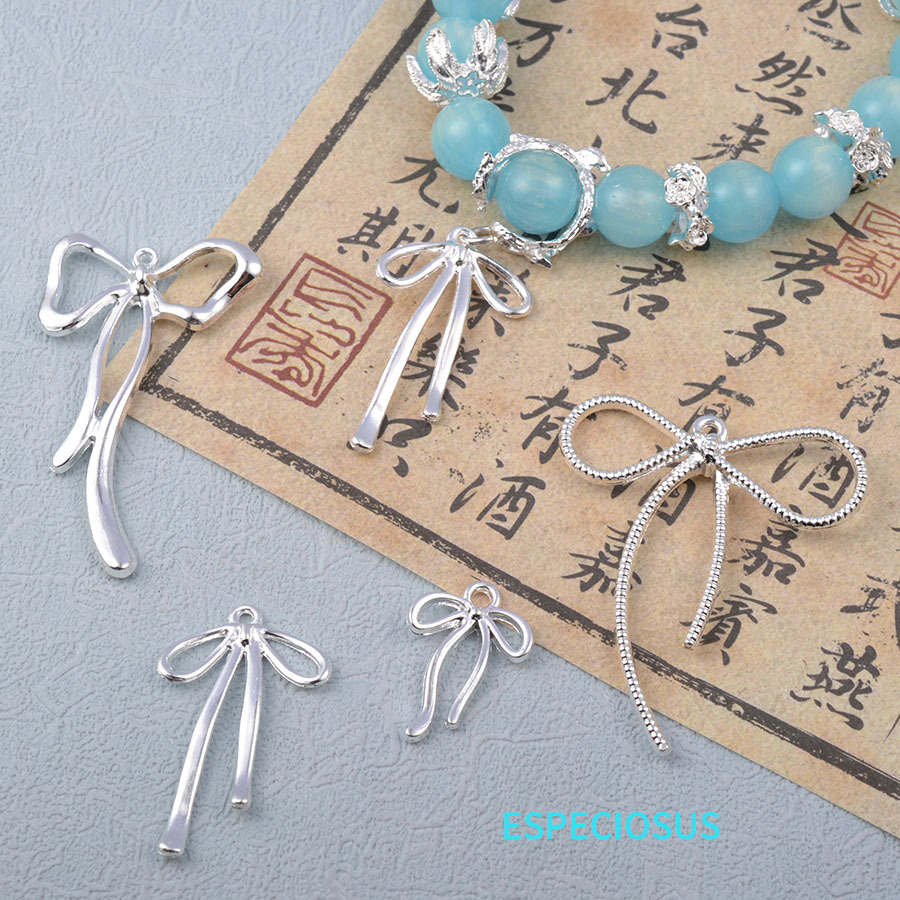 明るい銀色の合金の蝶結びのペンダントdiyアクセサリーの透かし彫りのリボンのブレスレットの手作りの材料