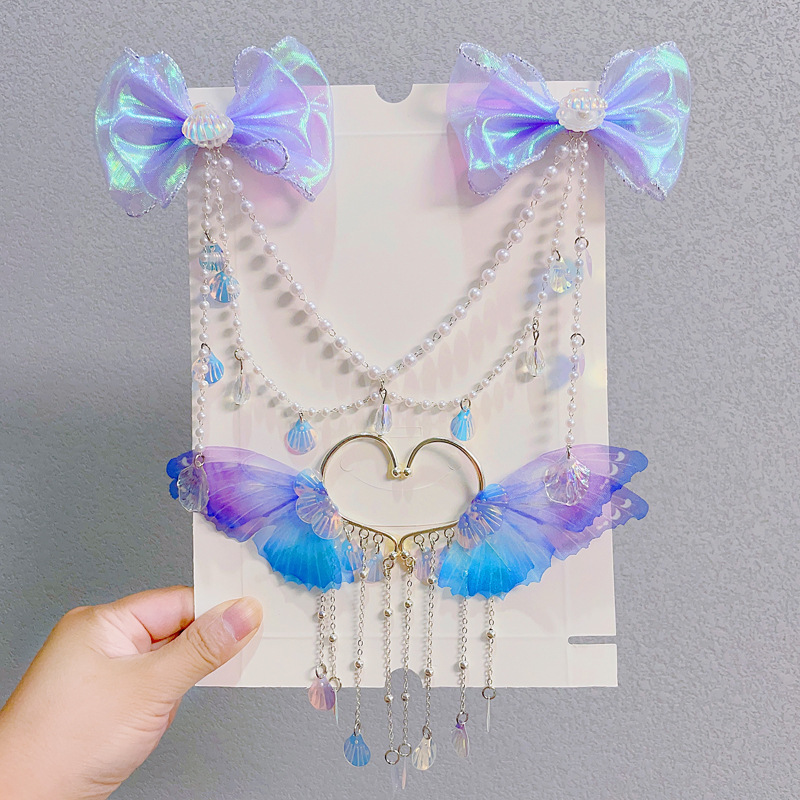 子供の蝶結びの額の鎖の王女の人魚姫の真珠のフリンジヘアピンの女の子の人魚の耳掛けの女の子の髪飾り