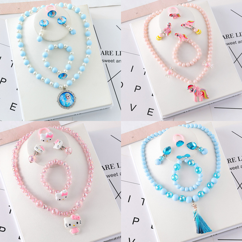 子供のネックレスのブレスレットの耳のクリップの髪飾りの王女のイヤリングの指輪の女の子のアクセサリーの赤ちゃんのかわいいアニメのアクセサリーの頭飾り