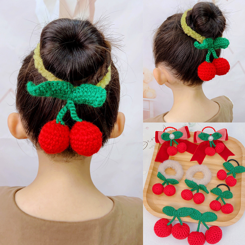 格子の蝶結びのヘアピンの後頭部は子供のヘアピンのネットの赤いネットの復古の小さい清新な日本の髪飾りの女の子の夏をつかみます。