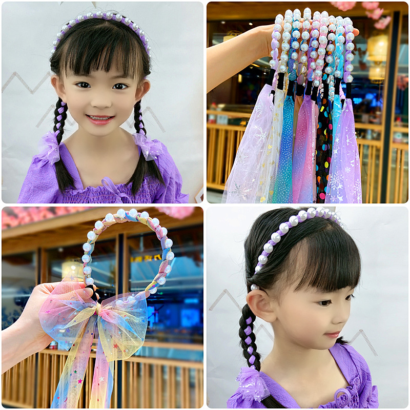 子供の髪飾りの女の子はリボンを編んで人魚姫のリボンを持っています。