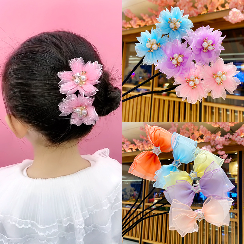 子供の髪の棒の女の子の蝶結びの髪飾りの丸い髪飾りのお姫様の髪飾りの赤ちゃんの可愛い髪飾り