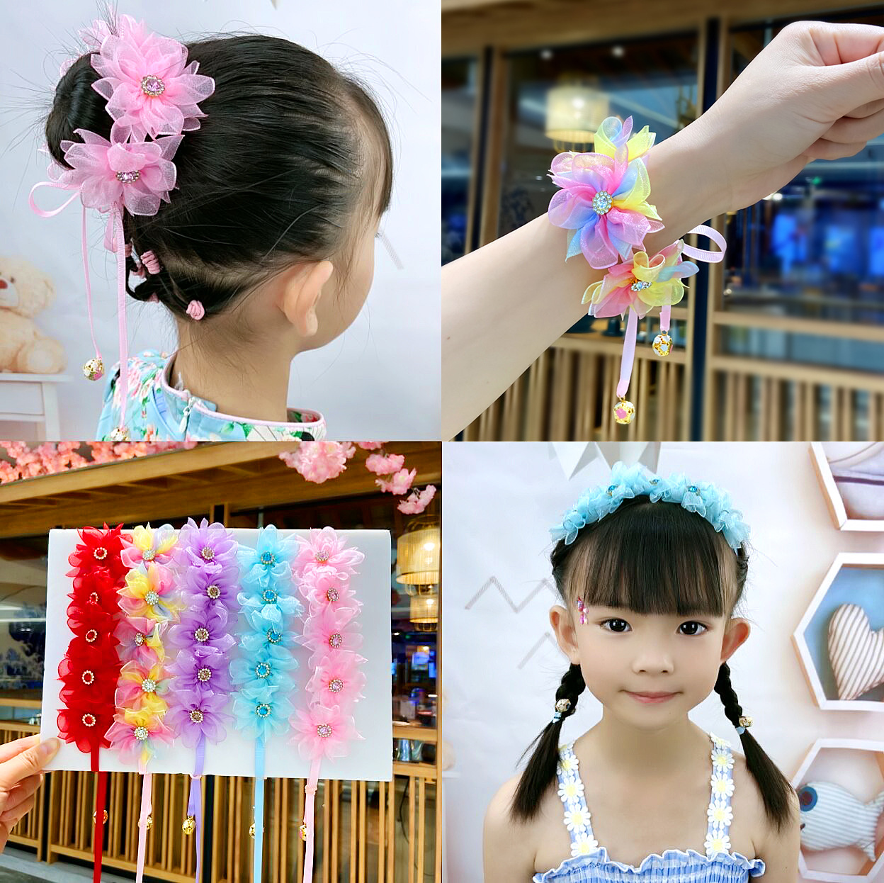 子供のお団子の頭の髪のヘアピンの後頭部のヘアピンの髪のカードの王女のかわいい髪のひもの女の子は髪の毛の花を刺します。