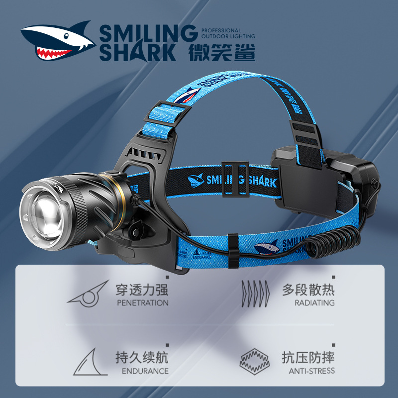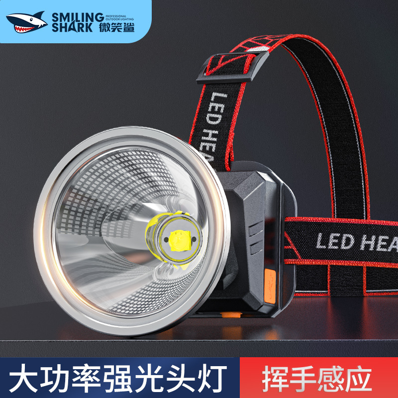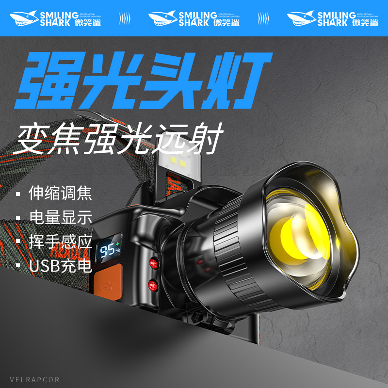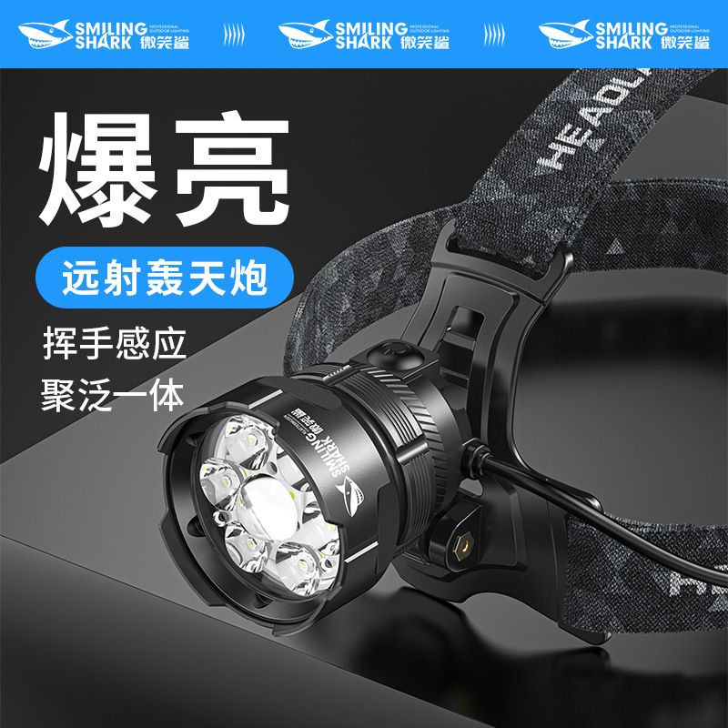 スマイルシャーク屋外ズーム強力なライト長距離ヘッドランプキャンプ充電式ヘッドランプスマートセンサーヘッドランプ