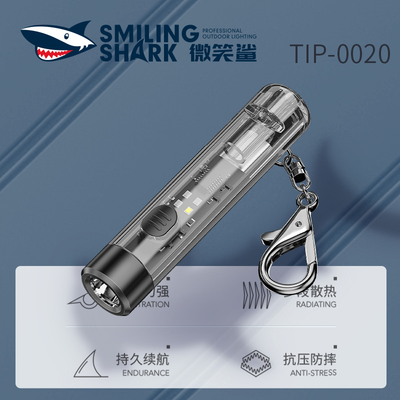 スマイルシャーク ミニポータブルキーホルダーライト マルチスピード調整可能 ポータブル屋外サイドライト付き 赤と青の点滅懐中電灯