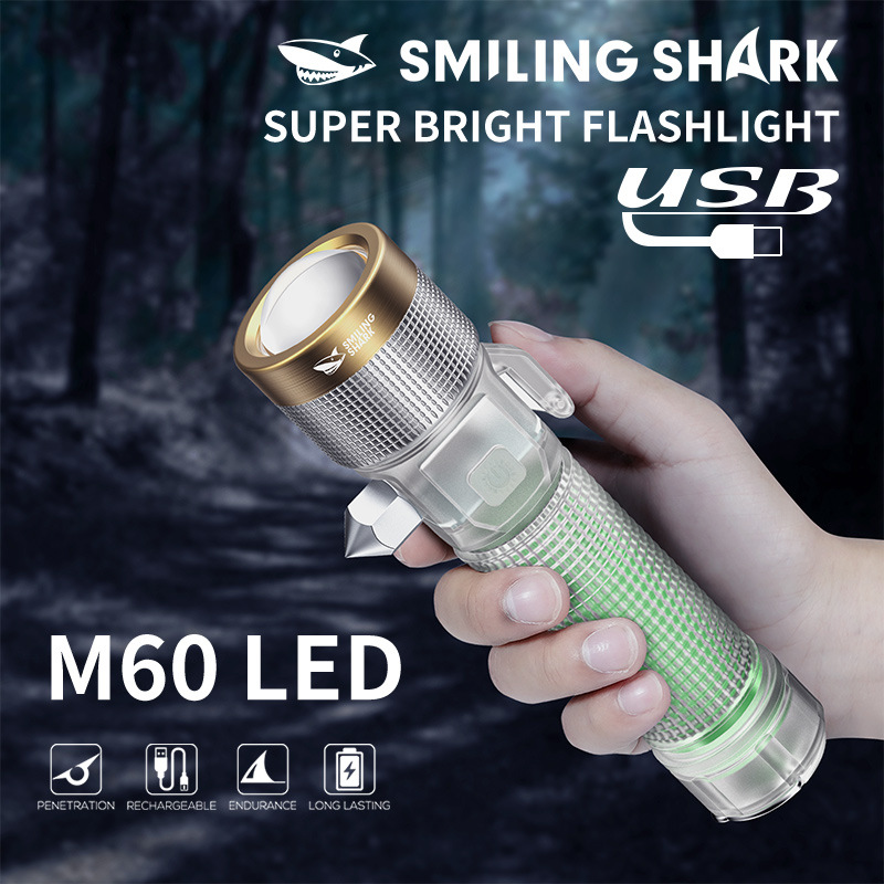 スマイルシャークハイライト ABS 家庭用懐中電灯ズーム可能な屋外長距離停電緊急 LED 便利なミニ照明