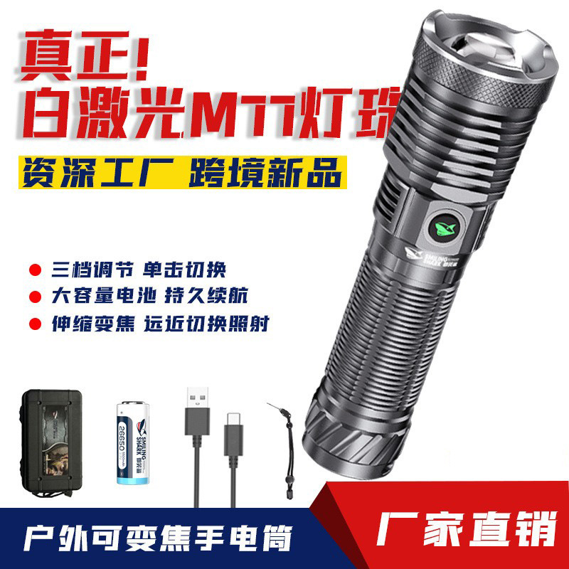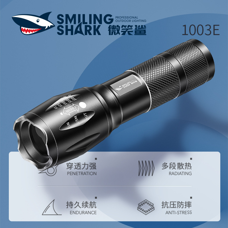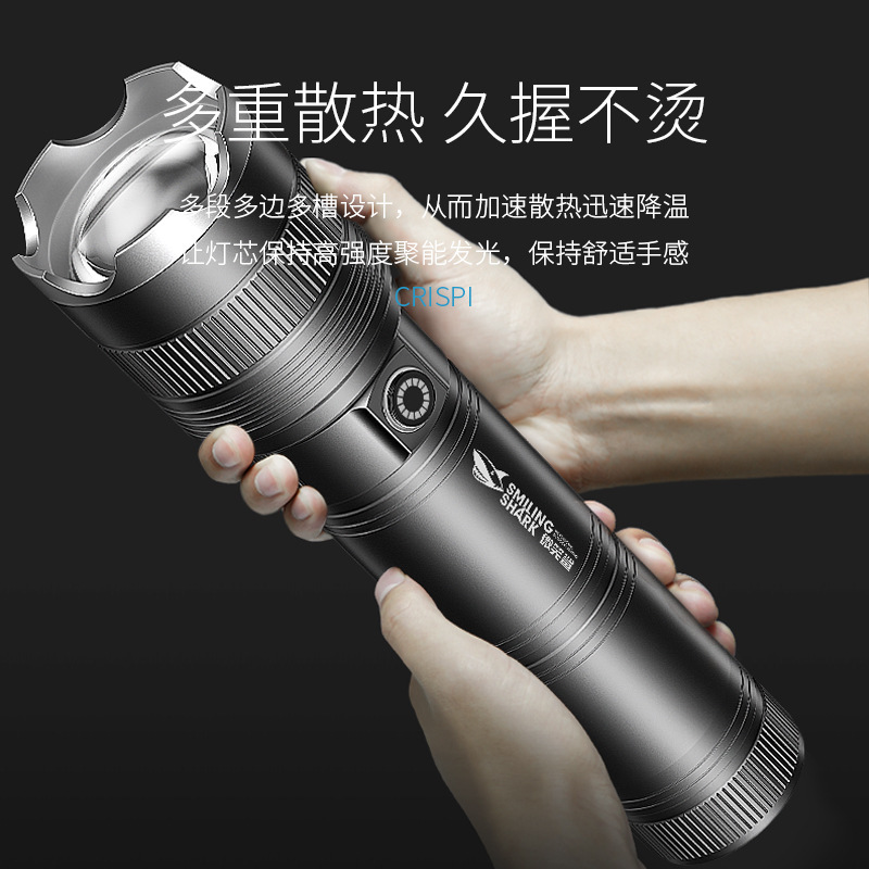 笑顔サメ強光充電懐中電灯屋外ズーム集光携帯超明るいキセノン照明灯家庭用応急写真
