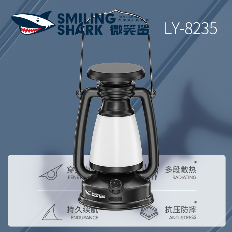 笑顔サメレトロ屋外照明キャンプライト防水フック式馬灯充電led携帯テントキャンプライト